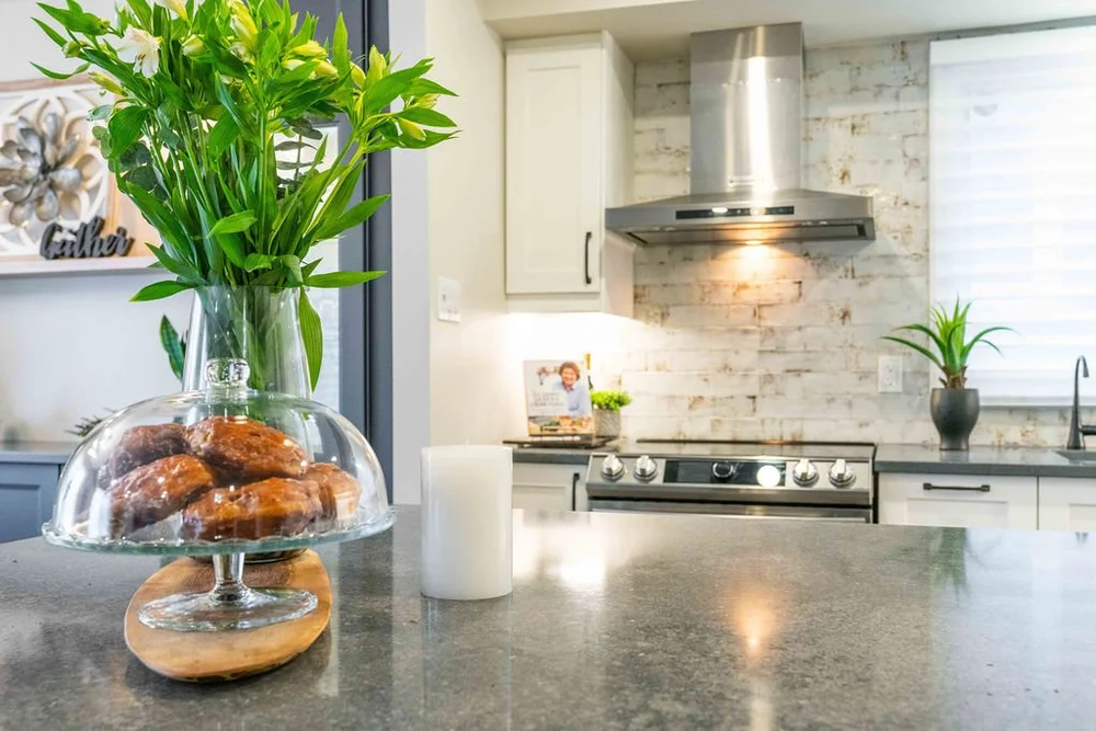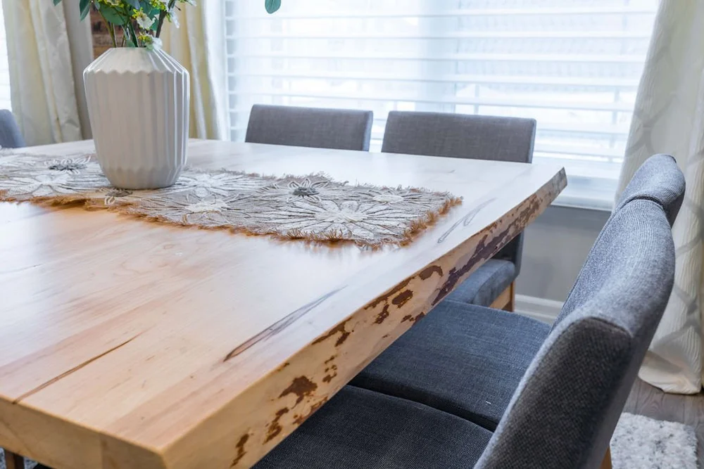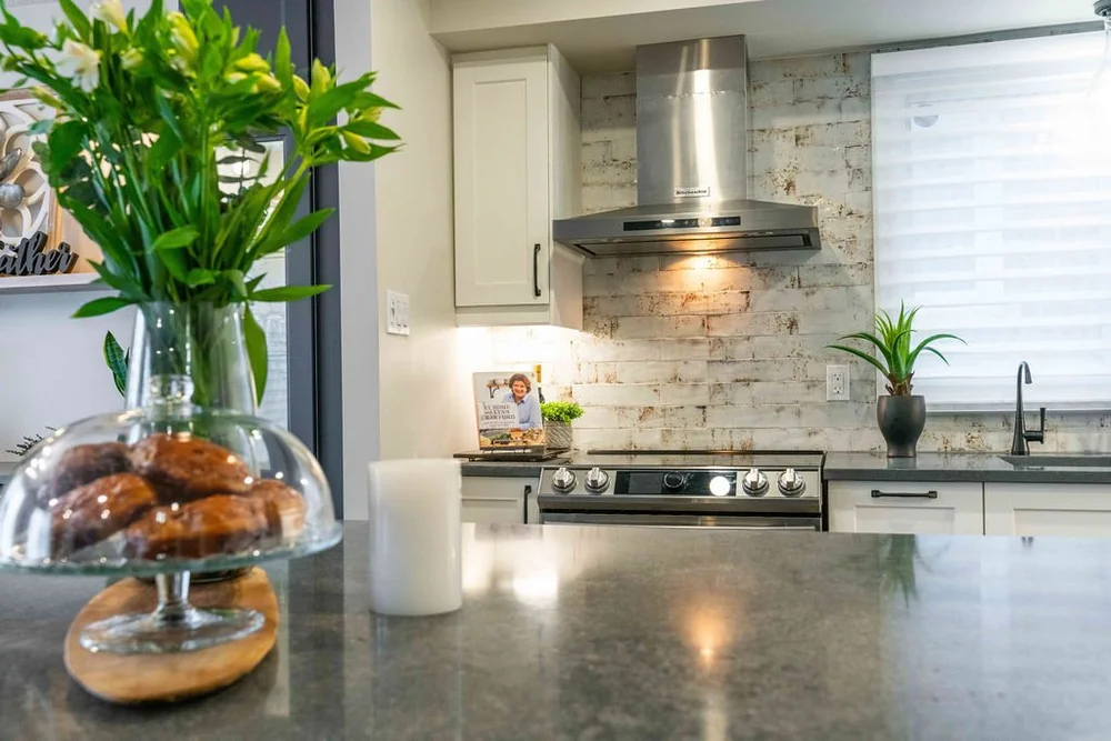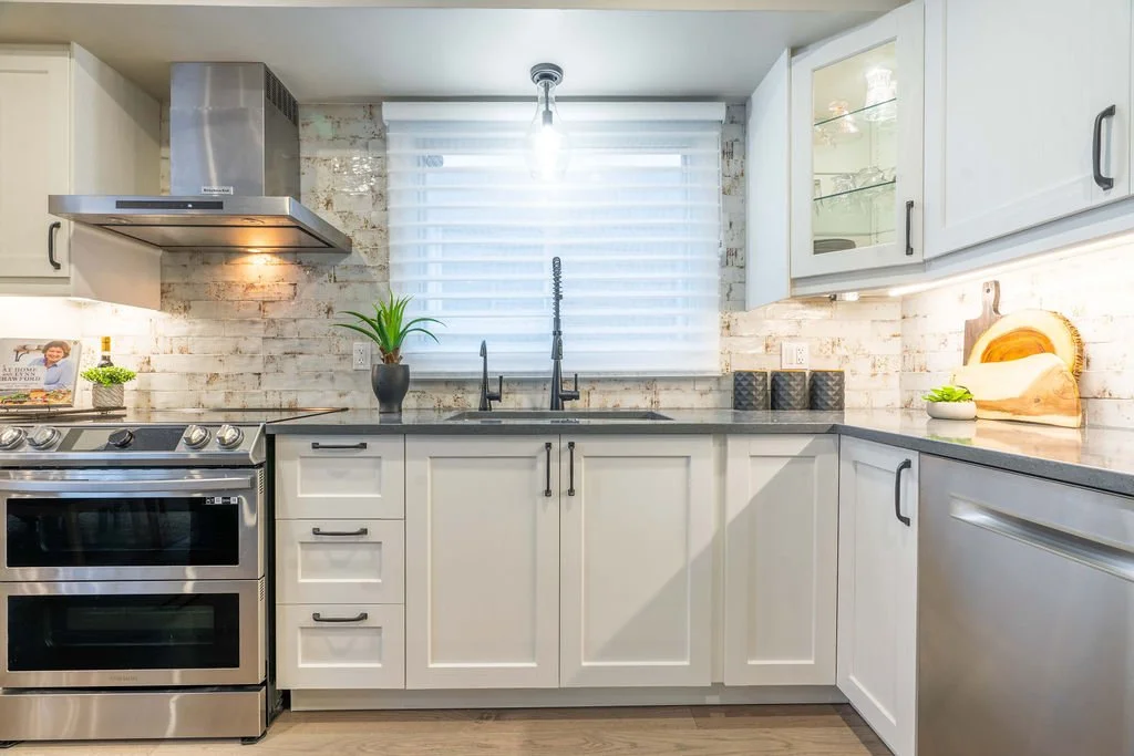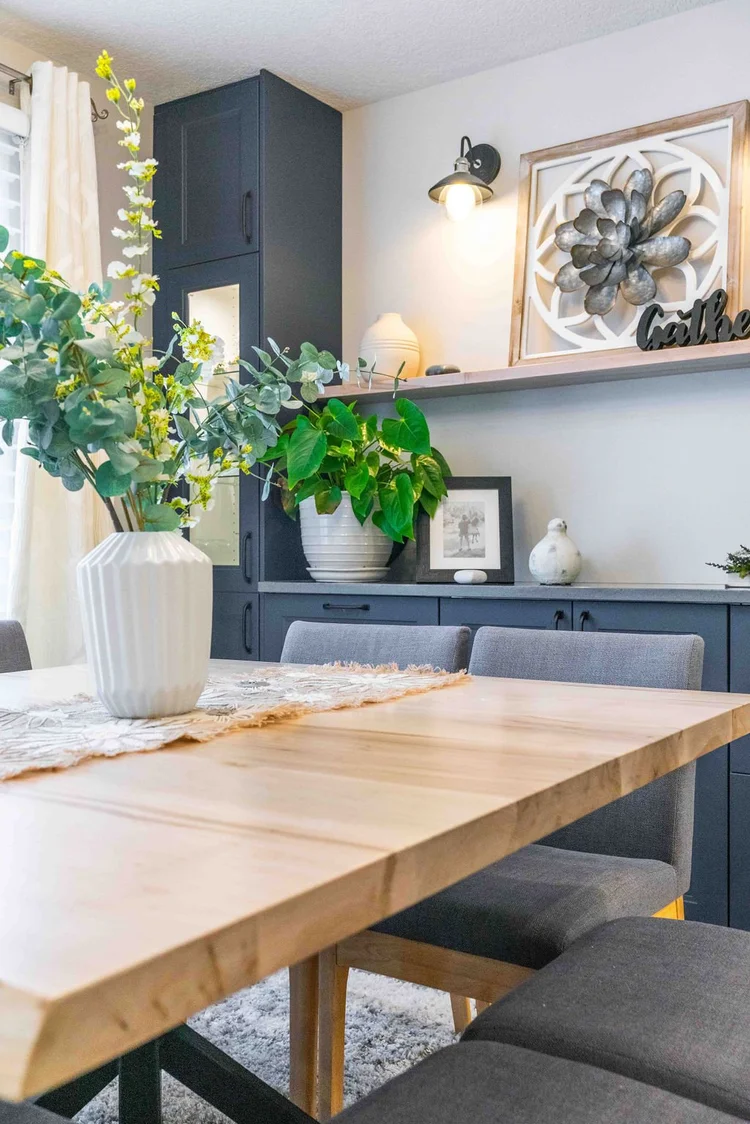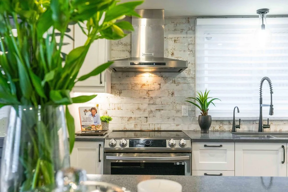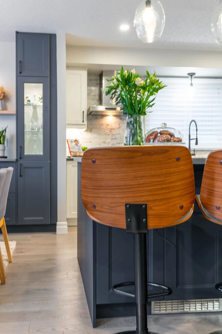 A warm, modern main-floor renovation featuring a custom kitchen and elegant dining space.