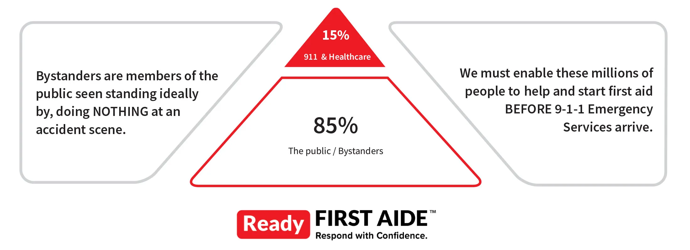 We’re enabling millions of people to respond with confidence and take action in a medical emergency. Our Ready FIRST AIDE™ web app provides the voice dictation, images, quick videos and skills you need to help you family, friends and co-workers. Our Become a willing bystander™ Program helps create safer communities
