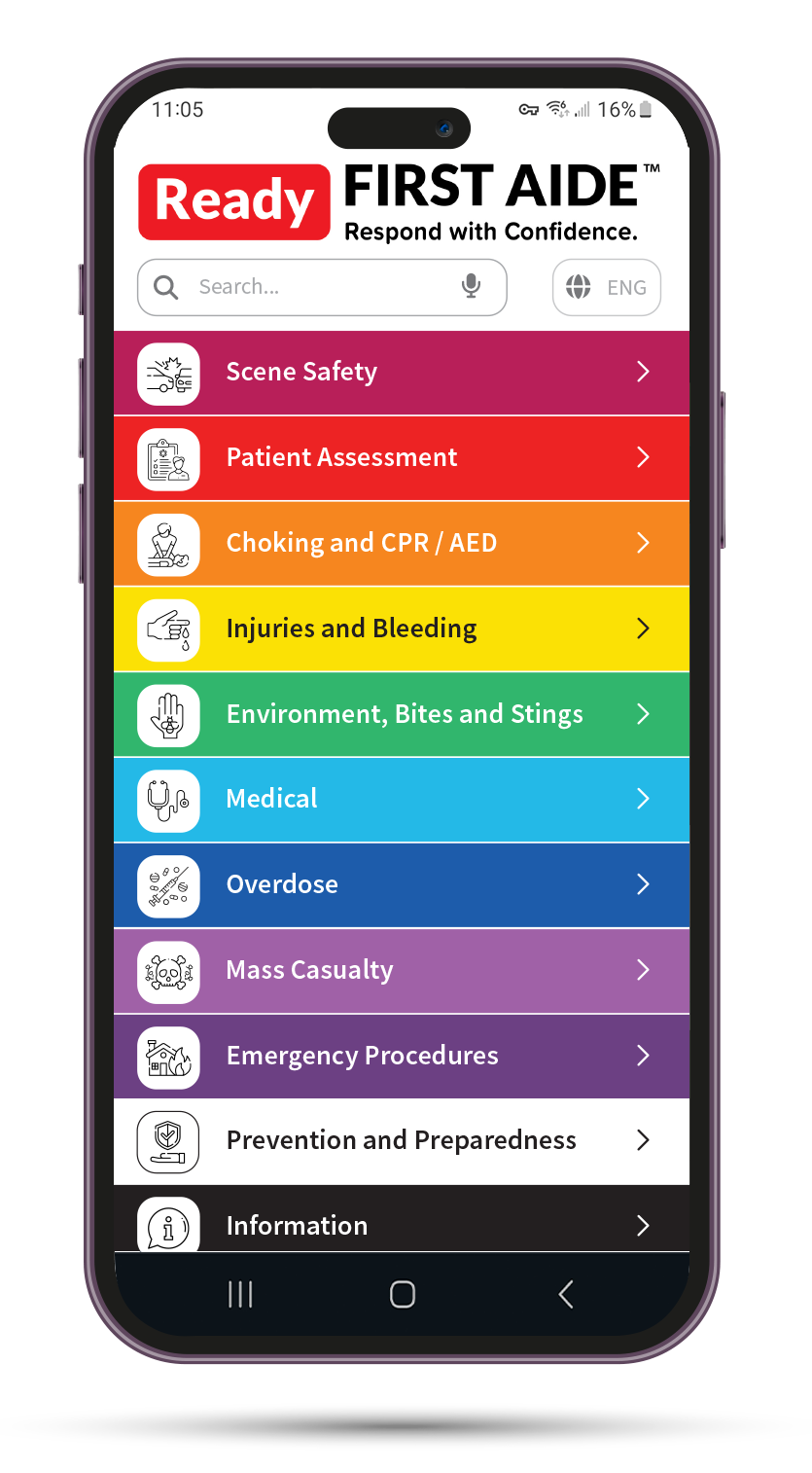 Ready FIRST AIDE™ is a secure cloud-based web application added to your desktop or mobile device for quick and easy access. It enables people to respond with confidence and start first aid before 9-1-1 emergency services arrive.