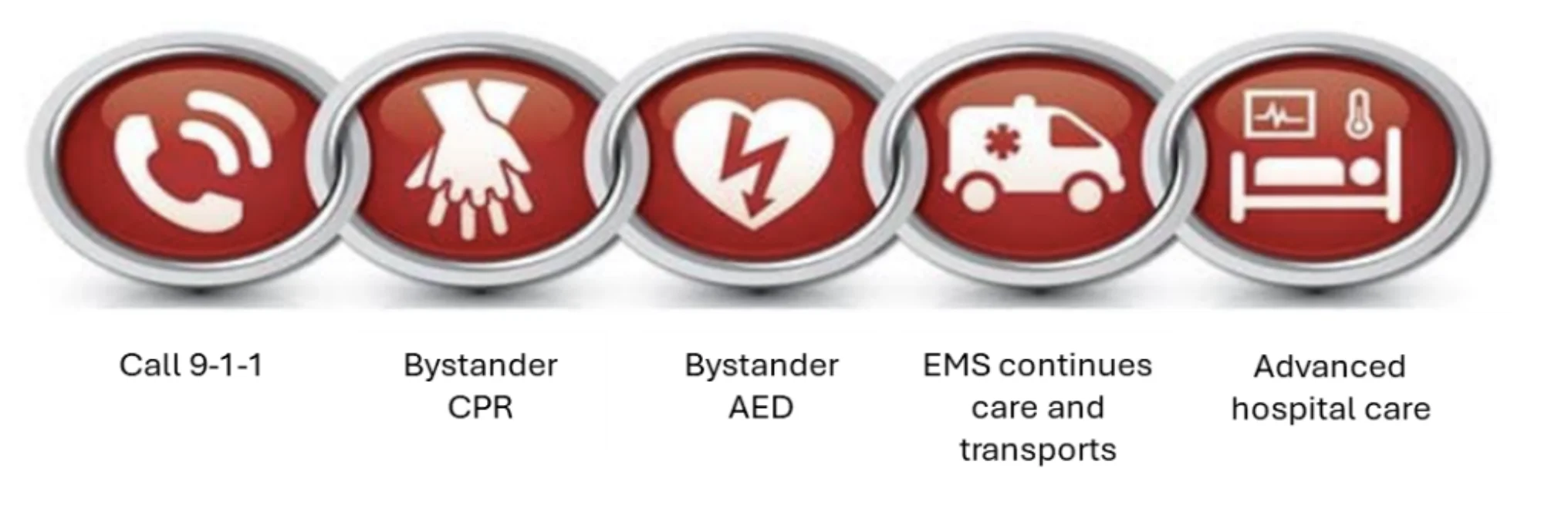 The Chain of Survival was developed back in early 2000 by the American Heart Association to illustrate the 5 key steps in saving a life and the huge role that bystanders play in sudden cardiac arrest response. If any link breaks the patient will not likely survive. It showed the importance of having the public participate and start care before 911 crews arrived